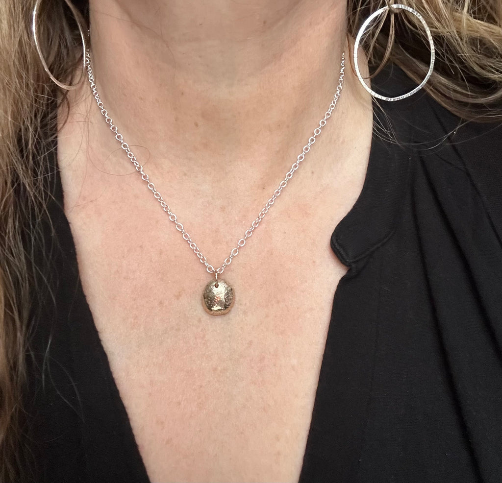 Recycled 9ct gold nugget on a silver chain with handmade catch